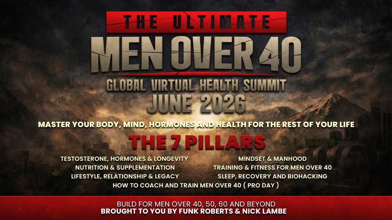 That’s exactly why we came together. Funk Roberts and Nick Lambe created the Men Over 40 Health Summit with one mission: To bring together the best experts in the world to help men over 40 reclaim their strength, health, energy, and longevity.